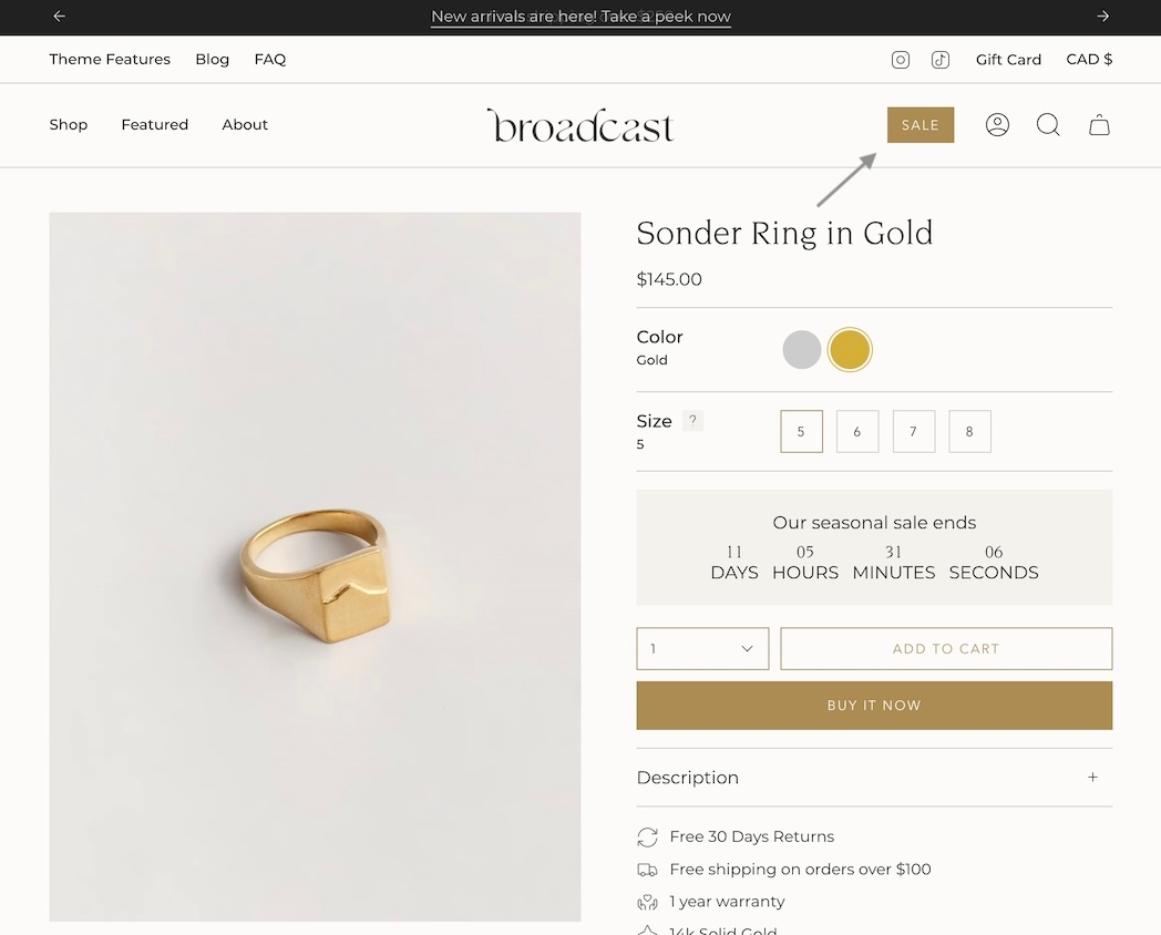Configure the global settings under Theme settings -> Product form -> Final sale