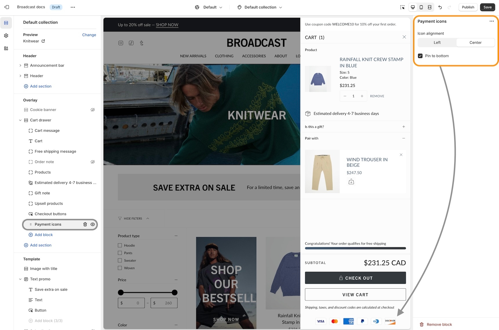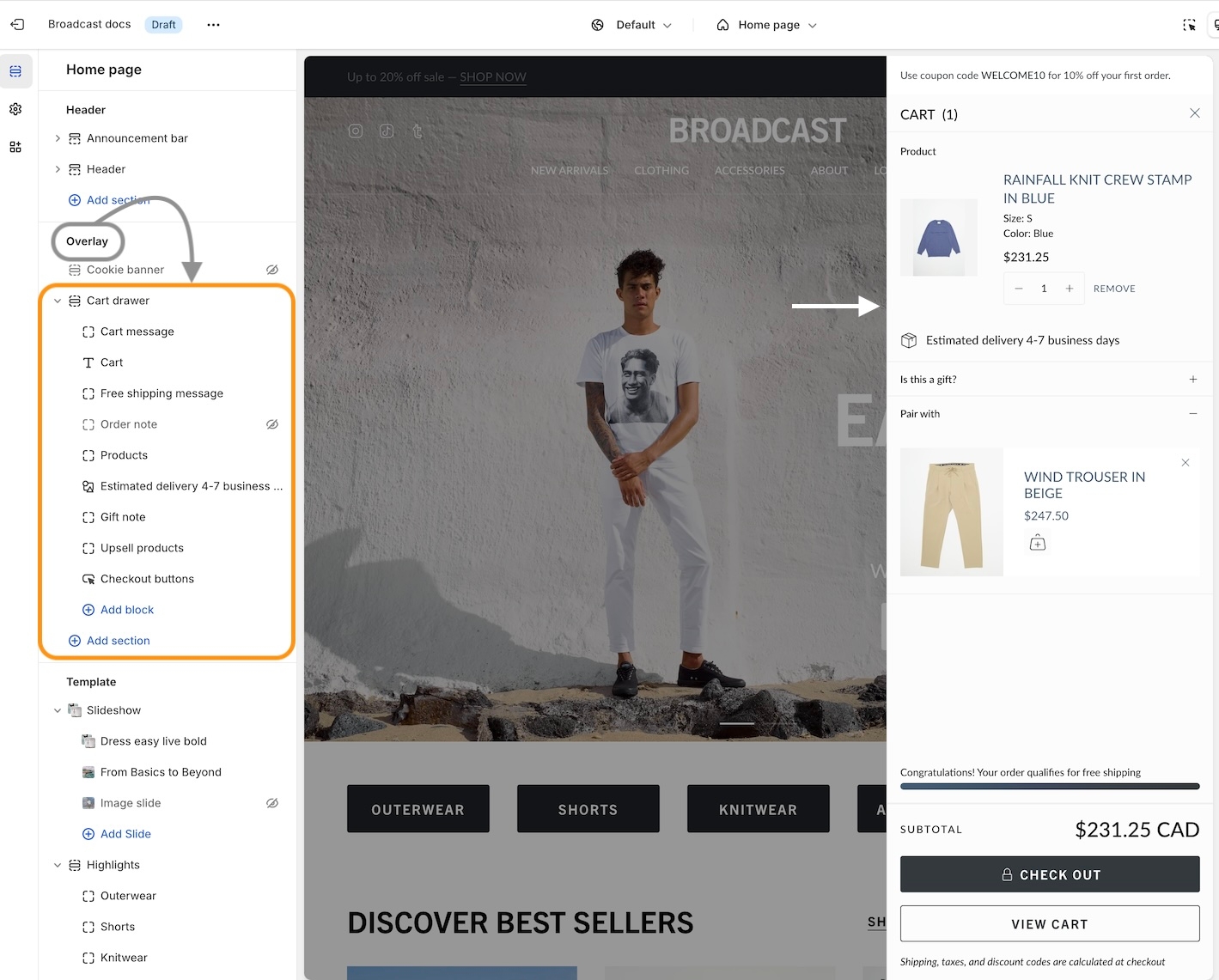Broadcast 5.6 introduces Cart drawer blocks. Customize the cart drawer with a series of blocks to supercharge the cart experience :
