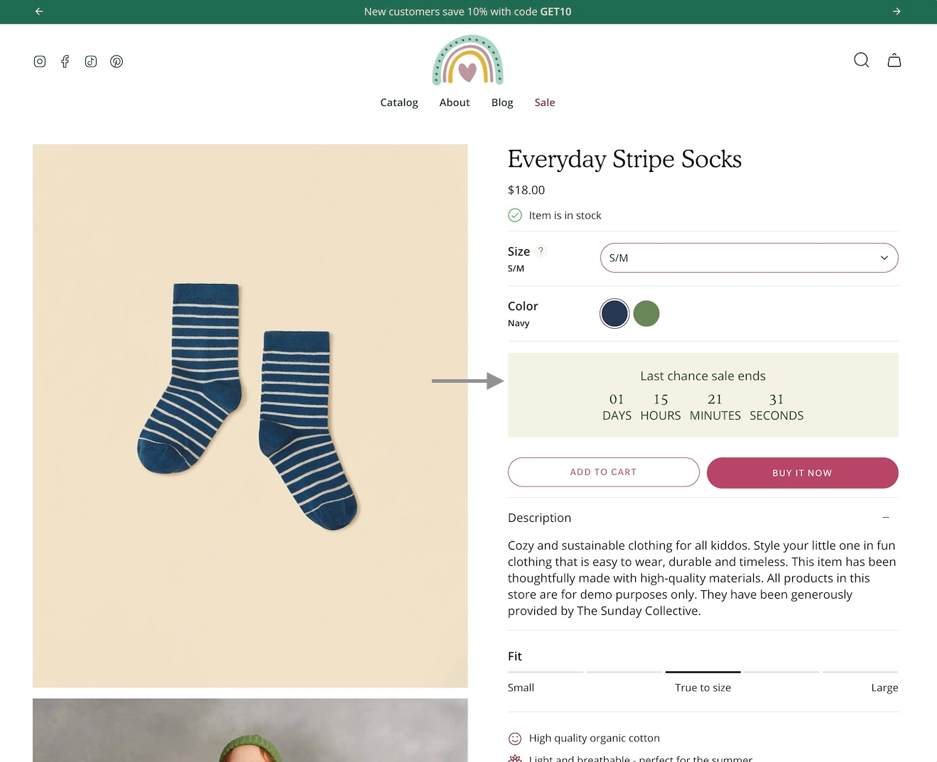 We've added a countdown timer block to the Product form. You can now quickly add a countdown promotion right into the Product form: