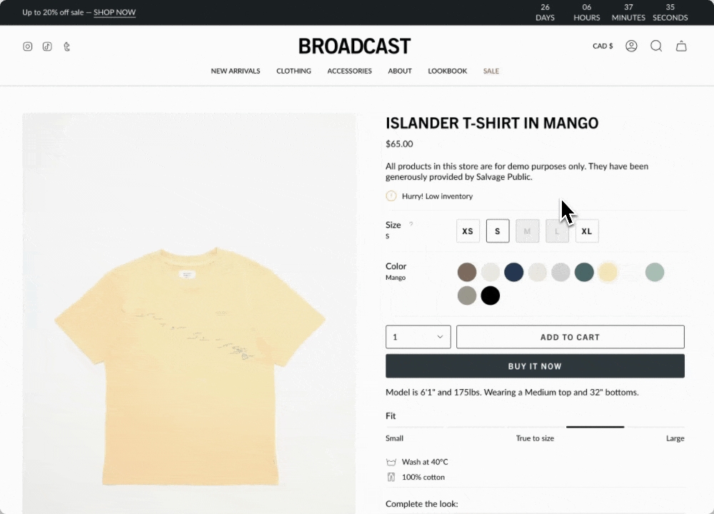Display images for any variant type on your product form. Help your customers visually see what a variant looks like. In addition to swatches, Broadcast can display an image for each Size variant or any other type you choose.
