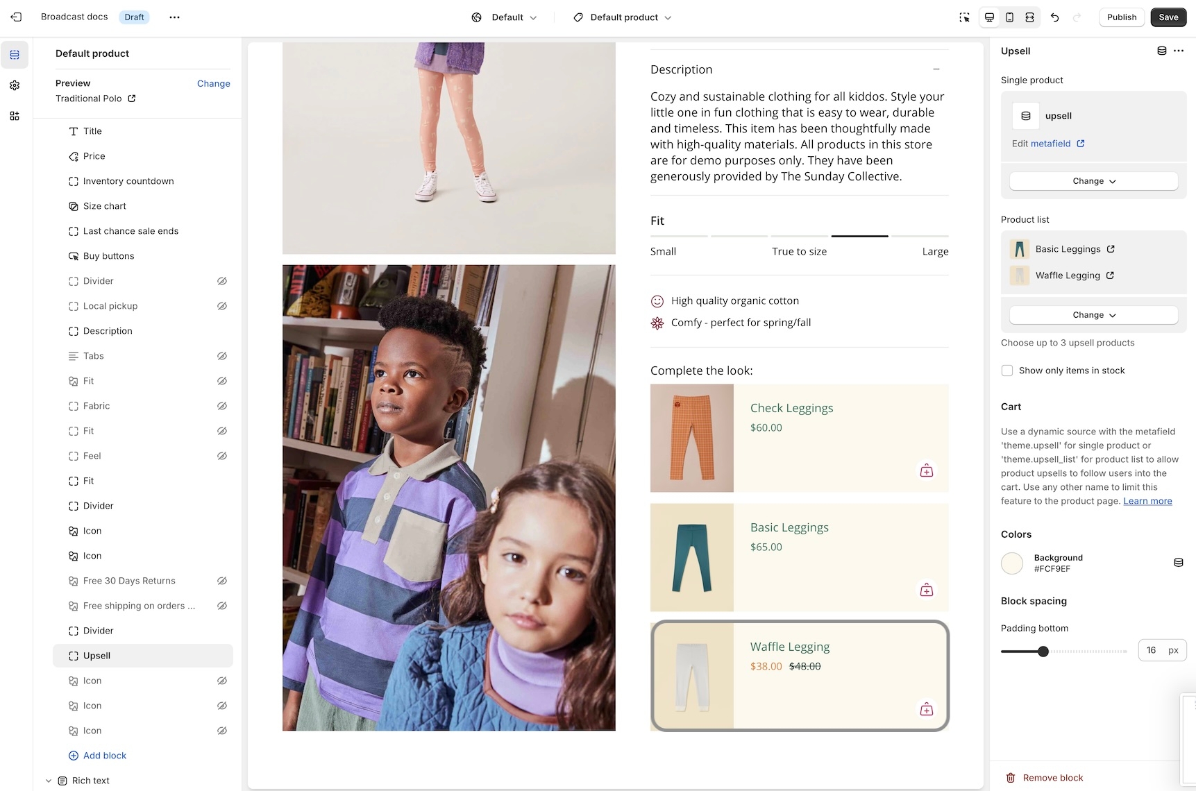 In the example below, the Waffle Legging is an upsell product. However, currently has no inventory:
