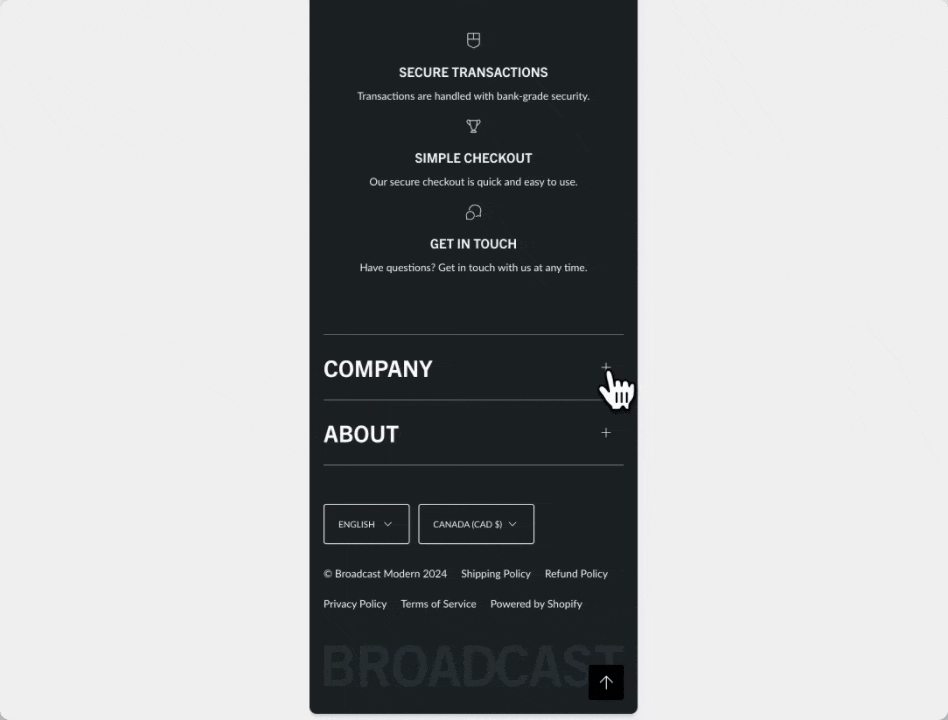 Mobile footer accordion options