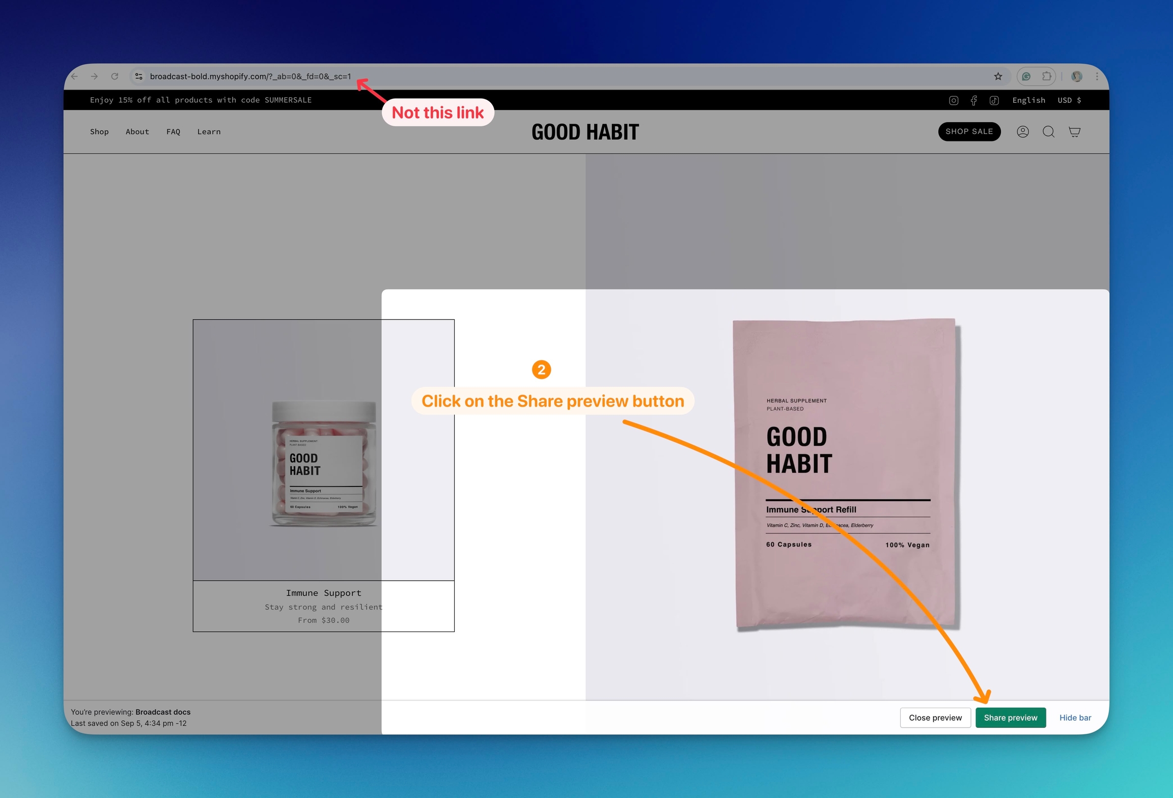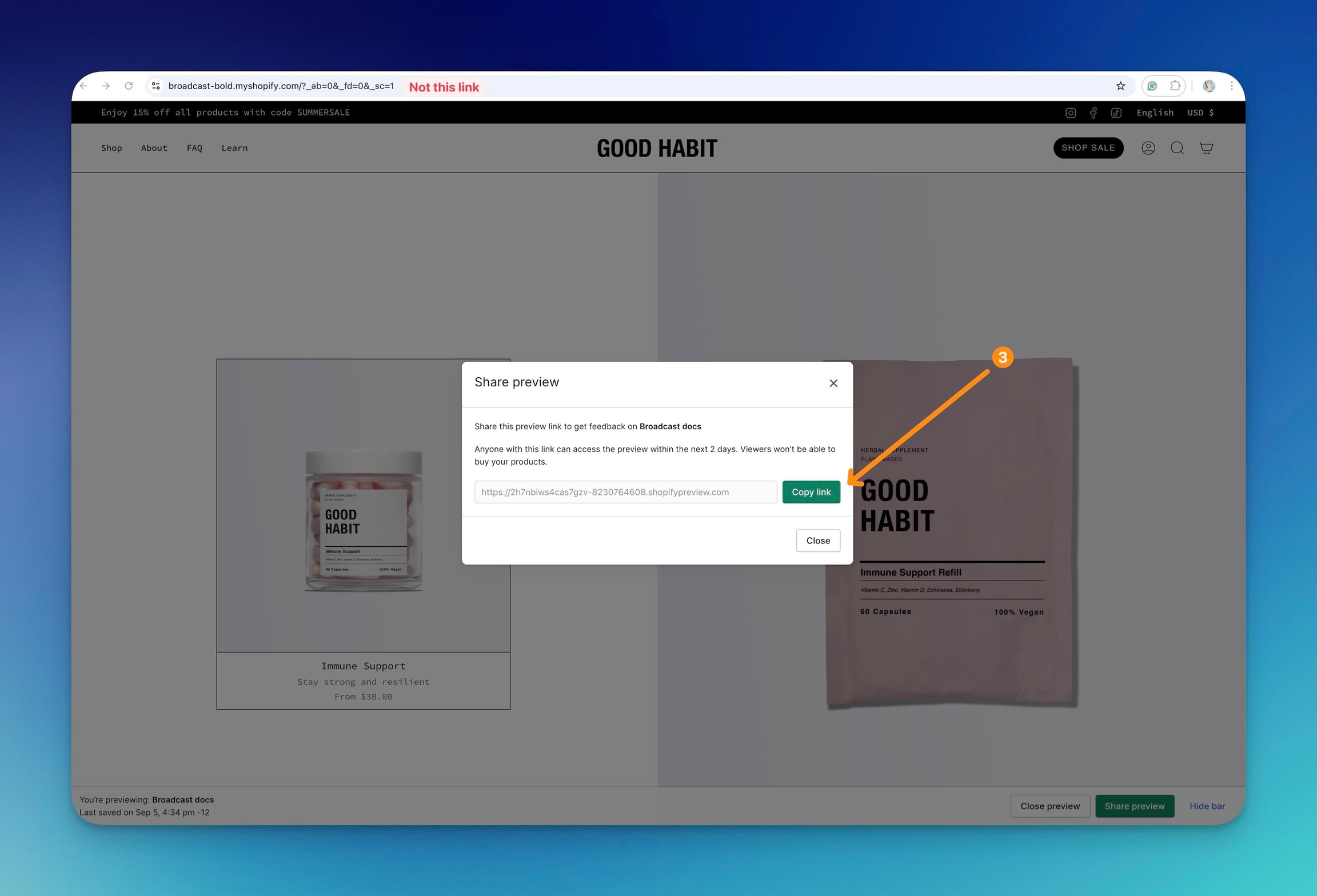 Shared preview links expire after a certain number of days and are randomly generated by Shopify.