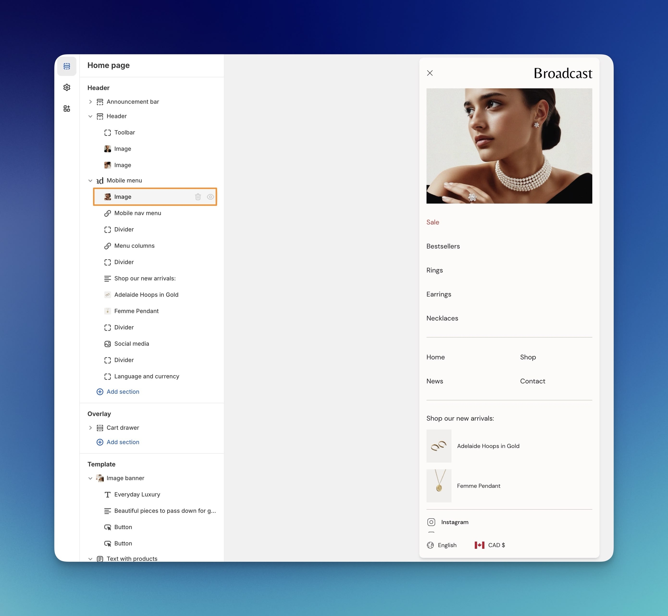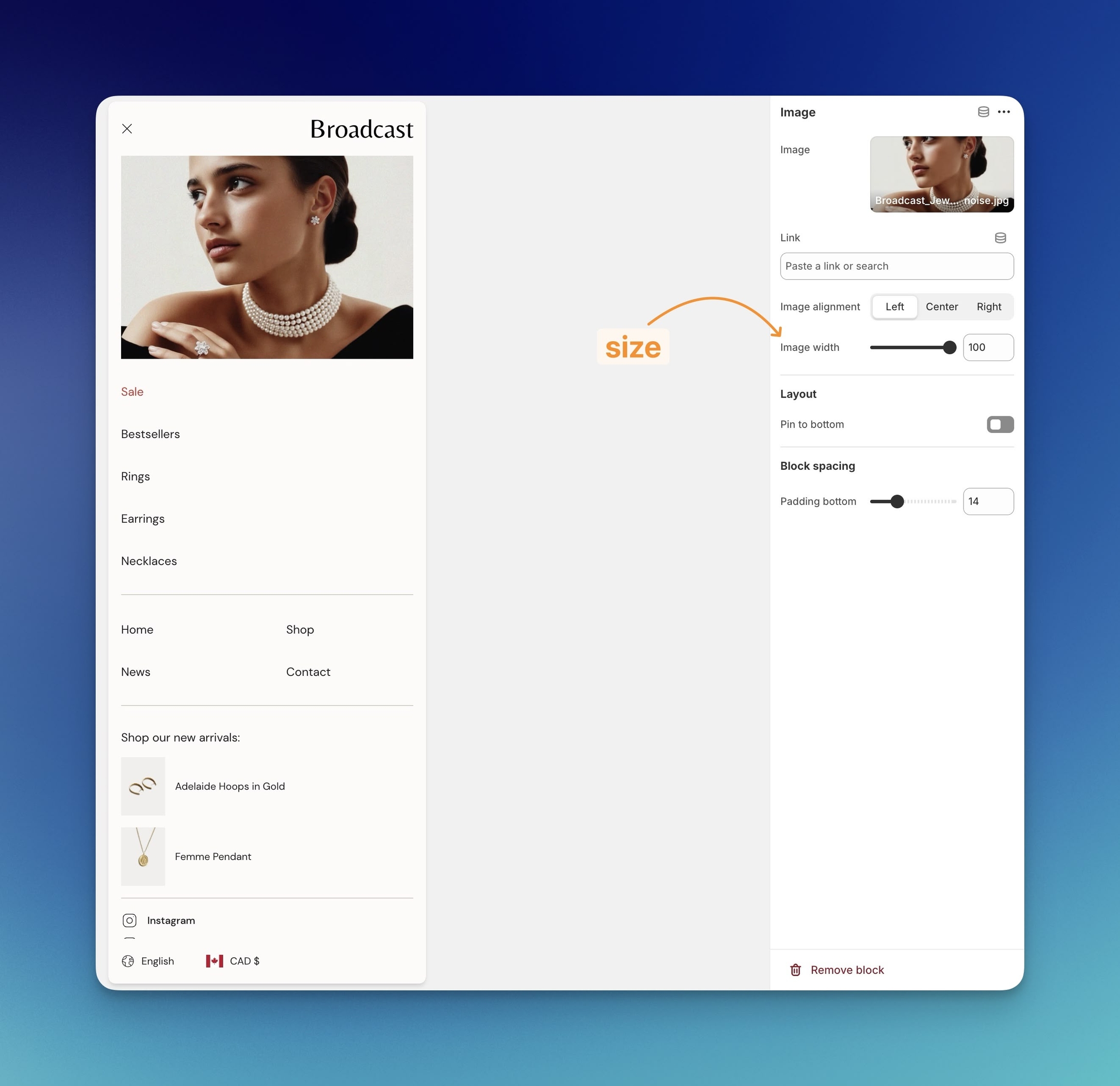 Include an image with a link to enhance the mobile menu. The image block can be utilized to position a branded image anywhere within the mobile menu: