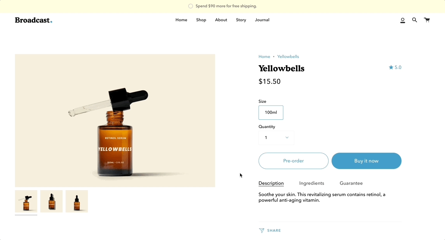 When Broadcast sees a product with this tag, the 'Add to cart' button will automatically be changed to 'Pre-order'.