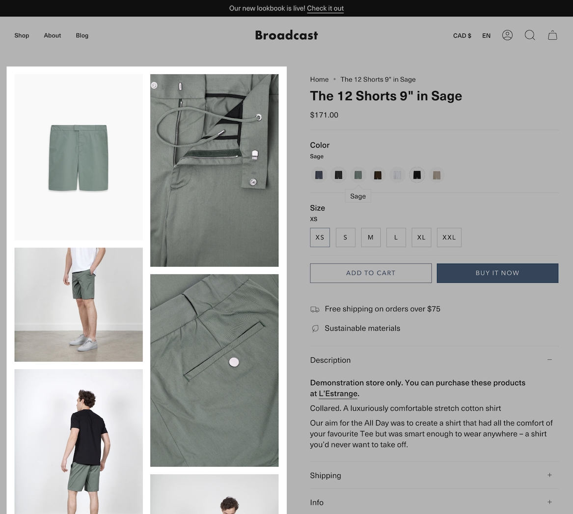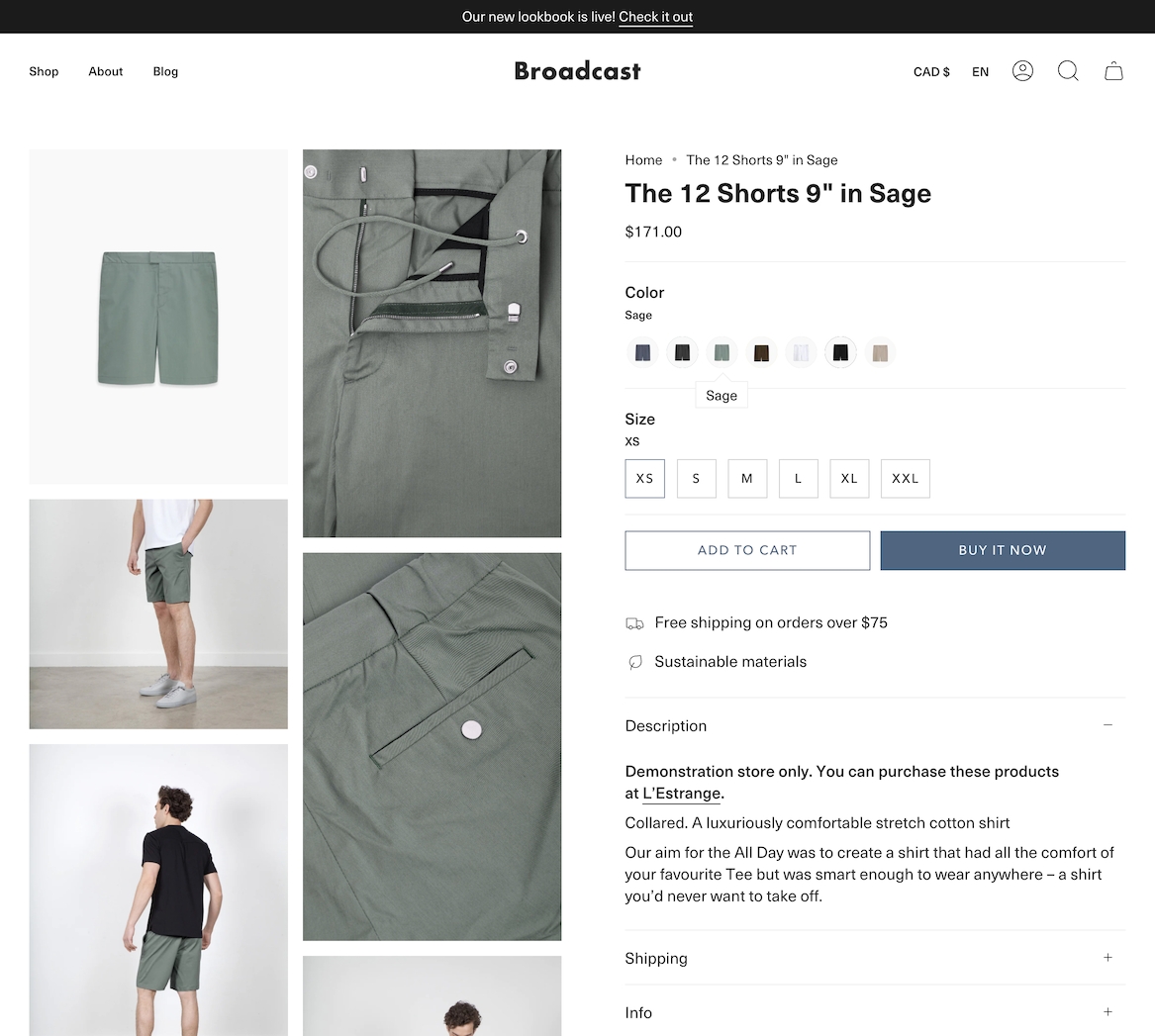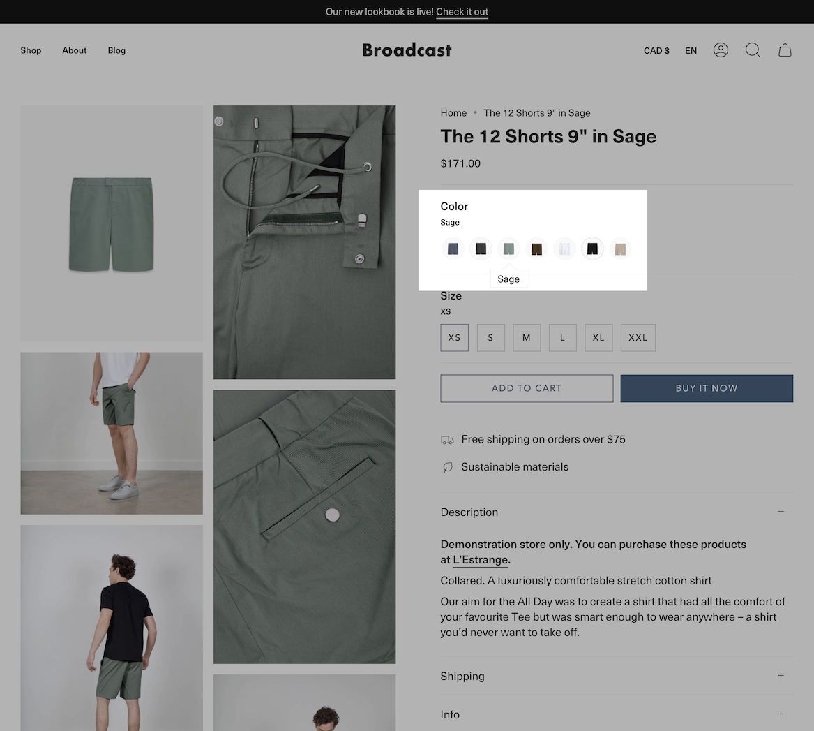 Broadcast includes the ability to link directly to other products as product swatches. The result is rich product detail pages that include swatches with images that represent each variant option.