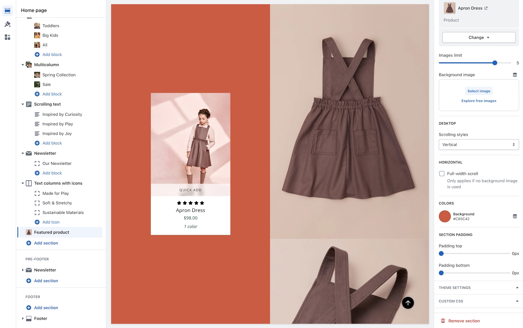 Fresh new design for the featured product section with new image scrolling options and additional section settings:
