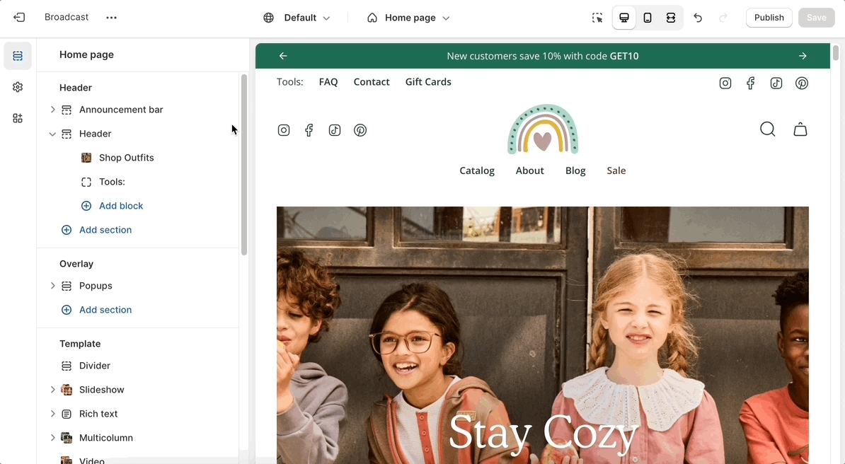 Our latest header block allows you to add more menu items, more icons, and more functionality to your main navigation.