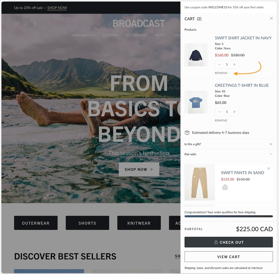 Remove link repositioned in the cart