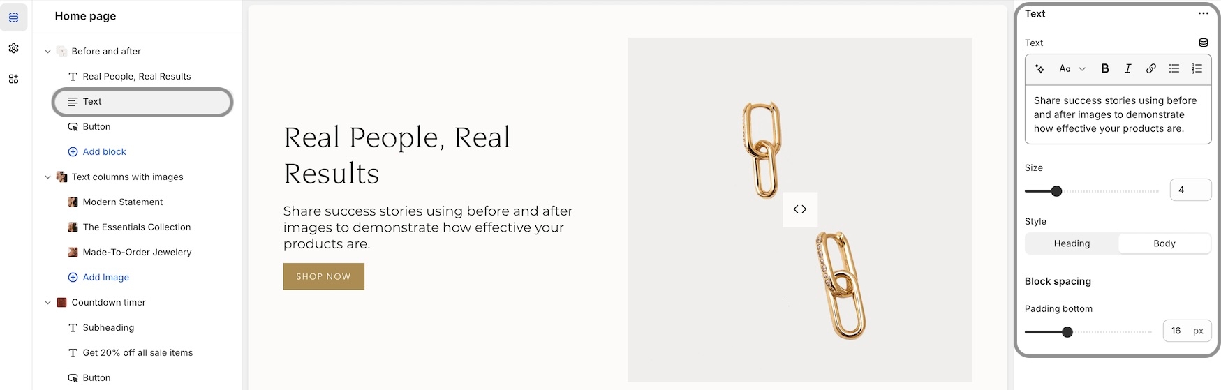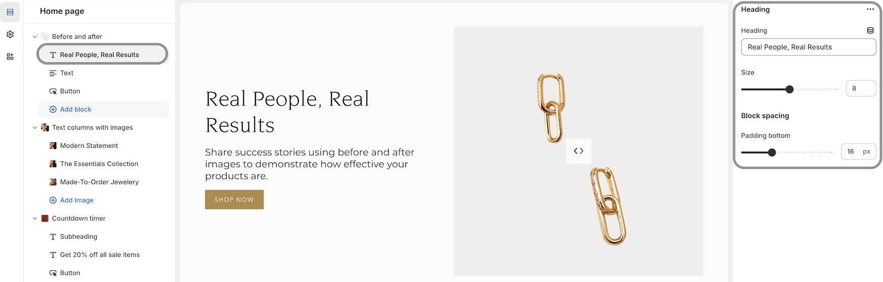 We've added additional size and spacing options to the blocks in the "Before and After" section: