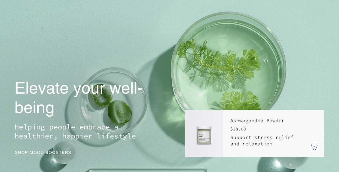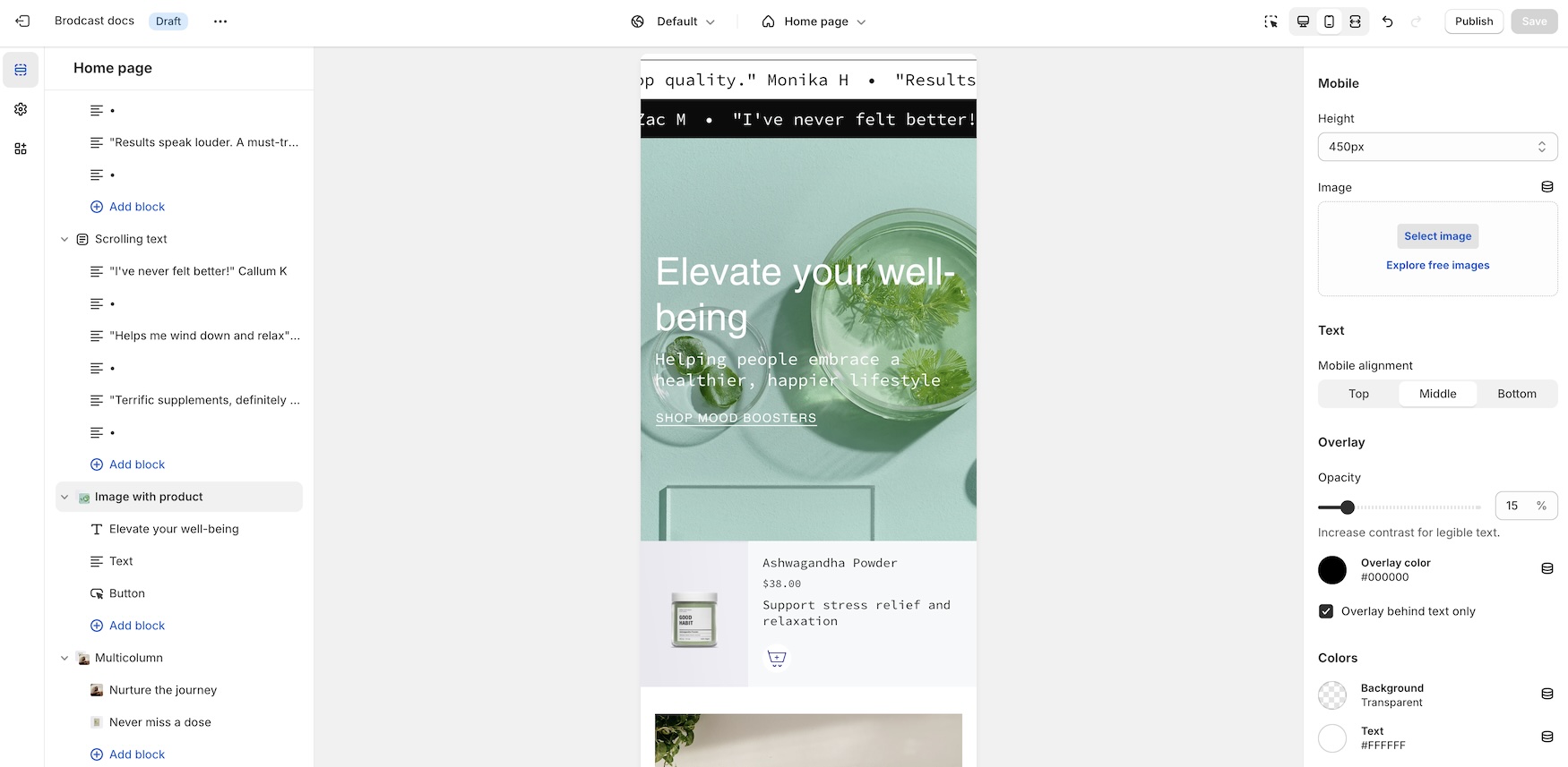 With Broadcast, you can now embed a product card right into an image banner-styled section: