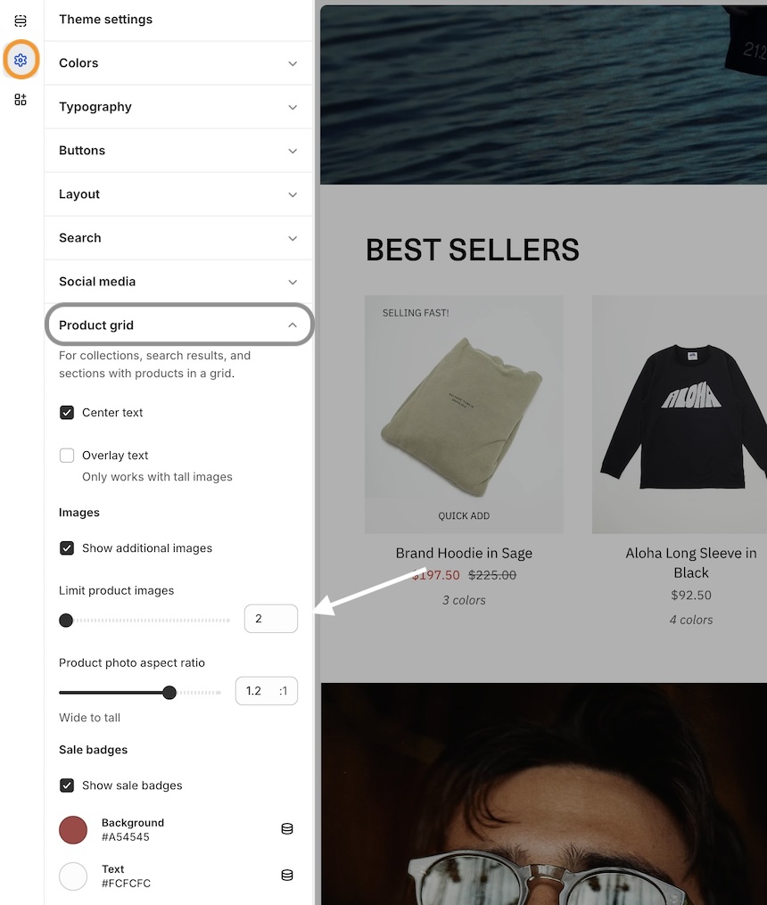 To adjust how many images appear in the slideshow, use the new setting in the Theme settings -> Product grid: