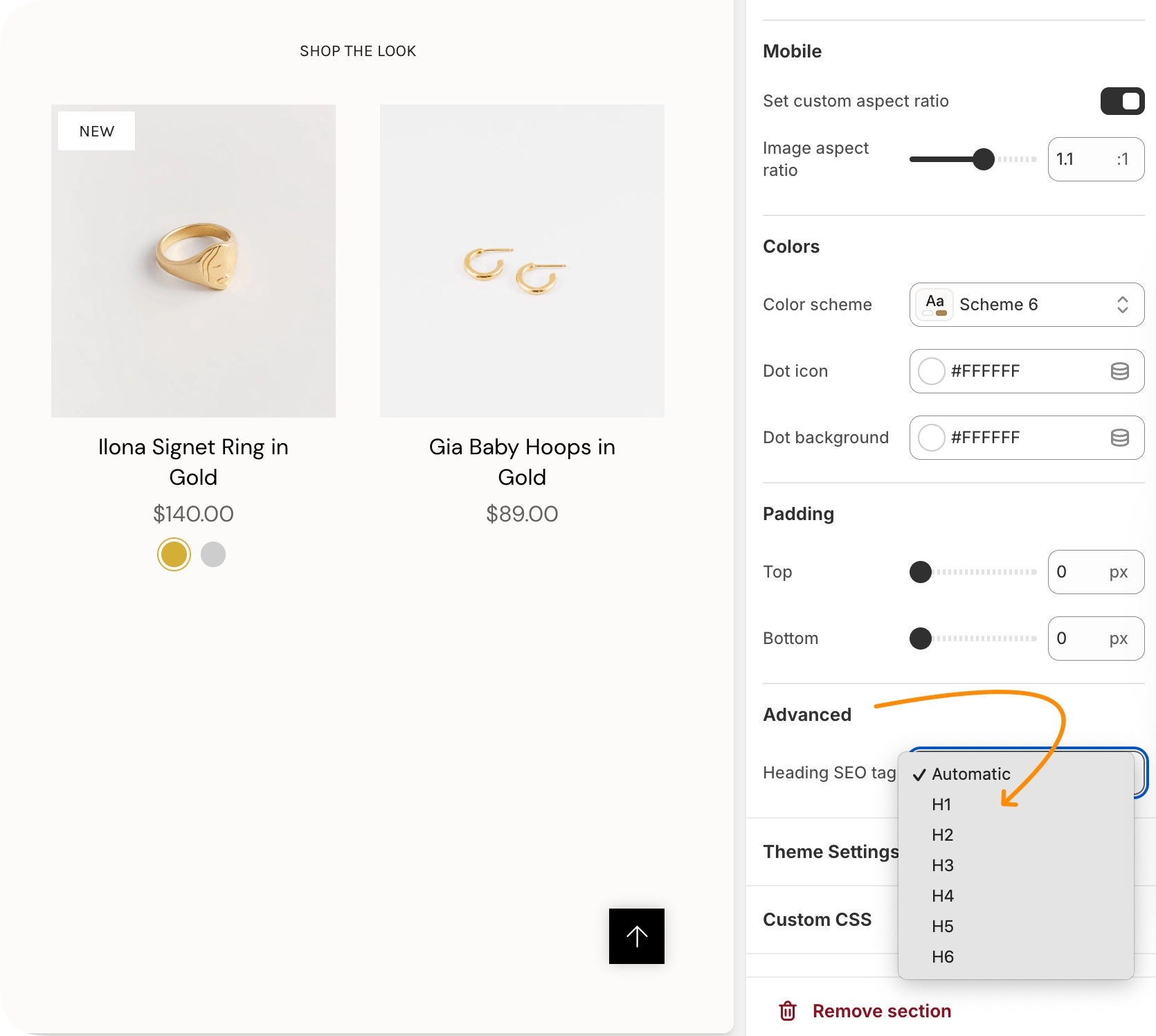 You can now choose the heading value for SEO without changing the design of the heading.