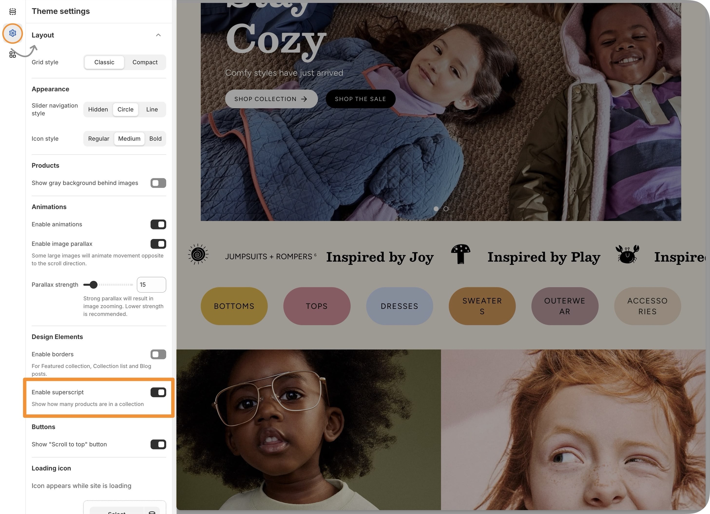 For subscript, activate in the Theme Settings, under Layout: