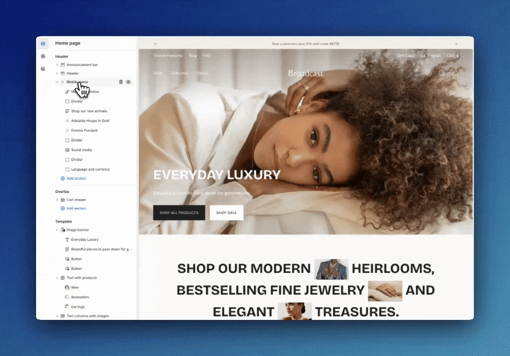 Choose a Shopify navigation menu as the main menu. This can be the same as your desktop menu or an entirely different version for mobile.