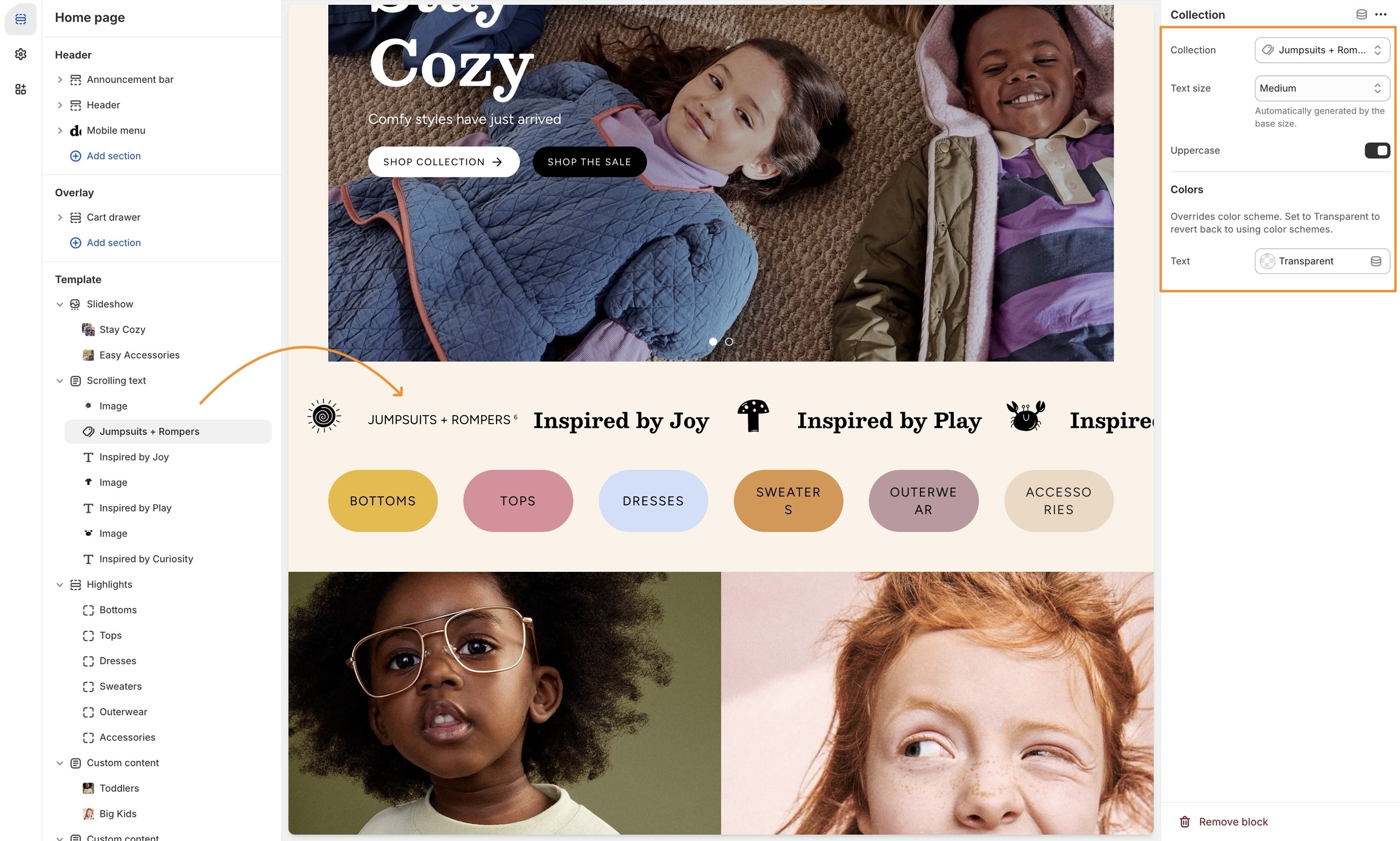 Collection block for Scrolling text