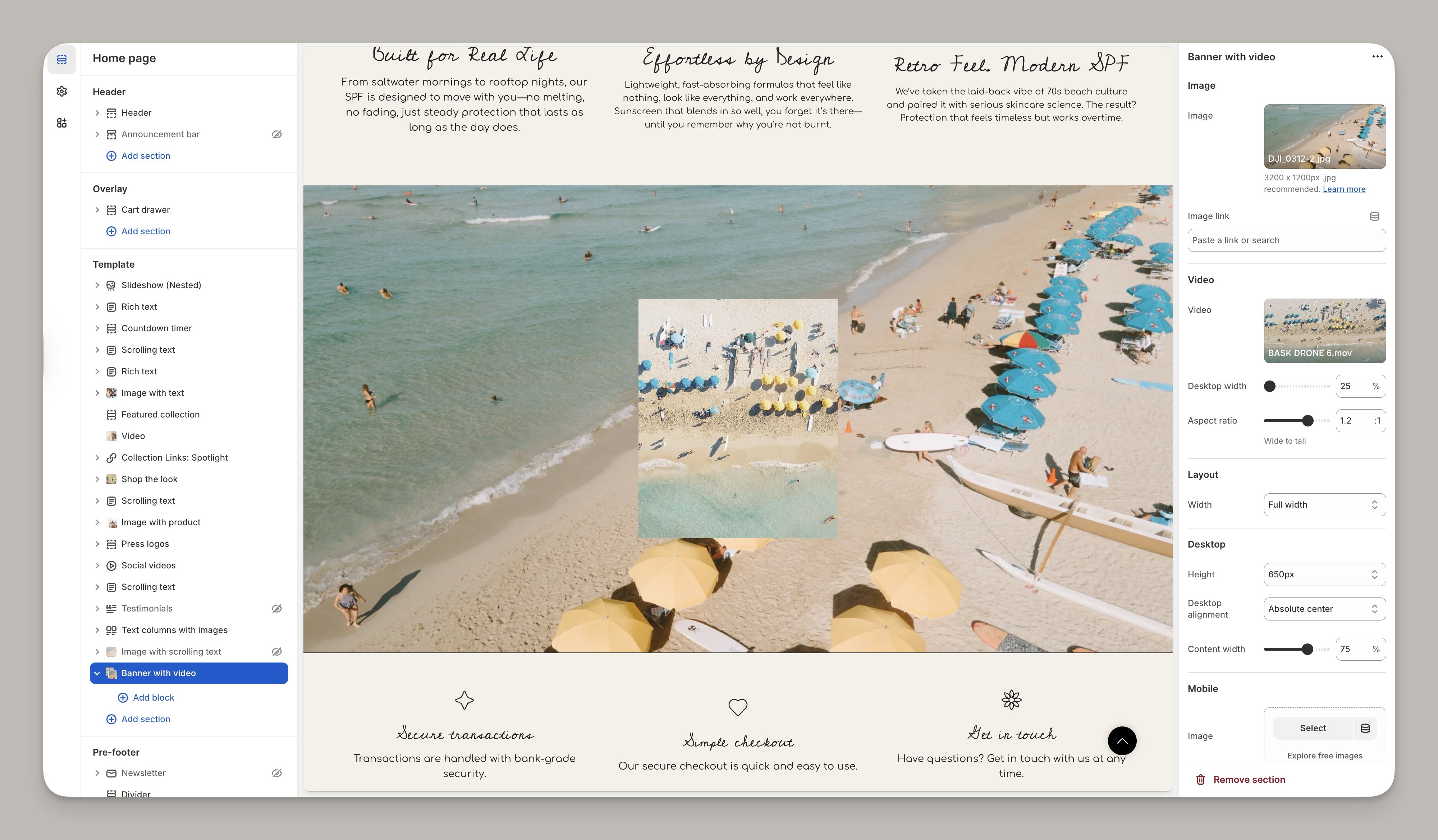 A visual way to show off the brand's personality. This new banner section lets you place a video over top of your main banner to add some animation without occupying the entire banner space:
